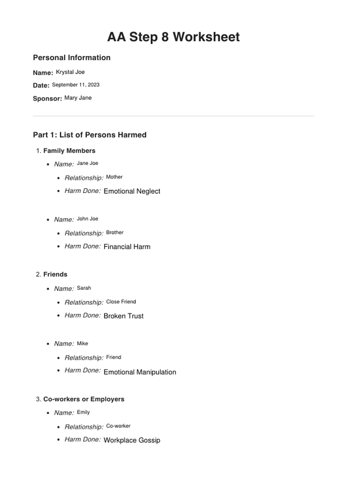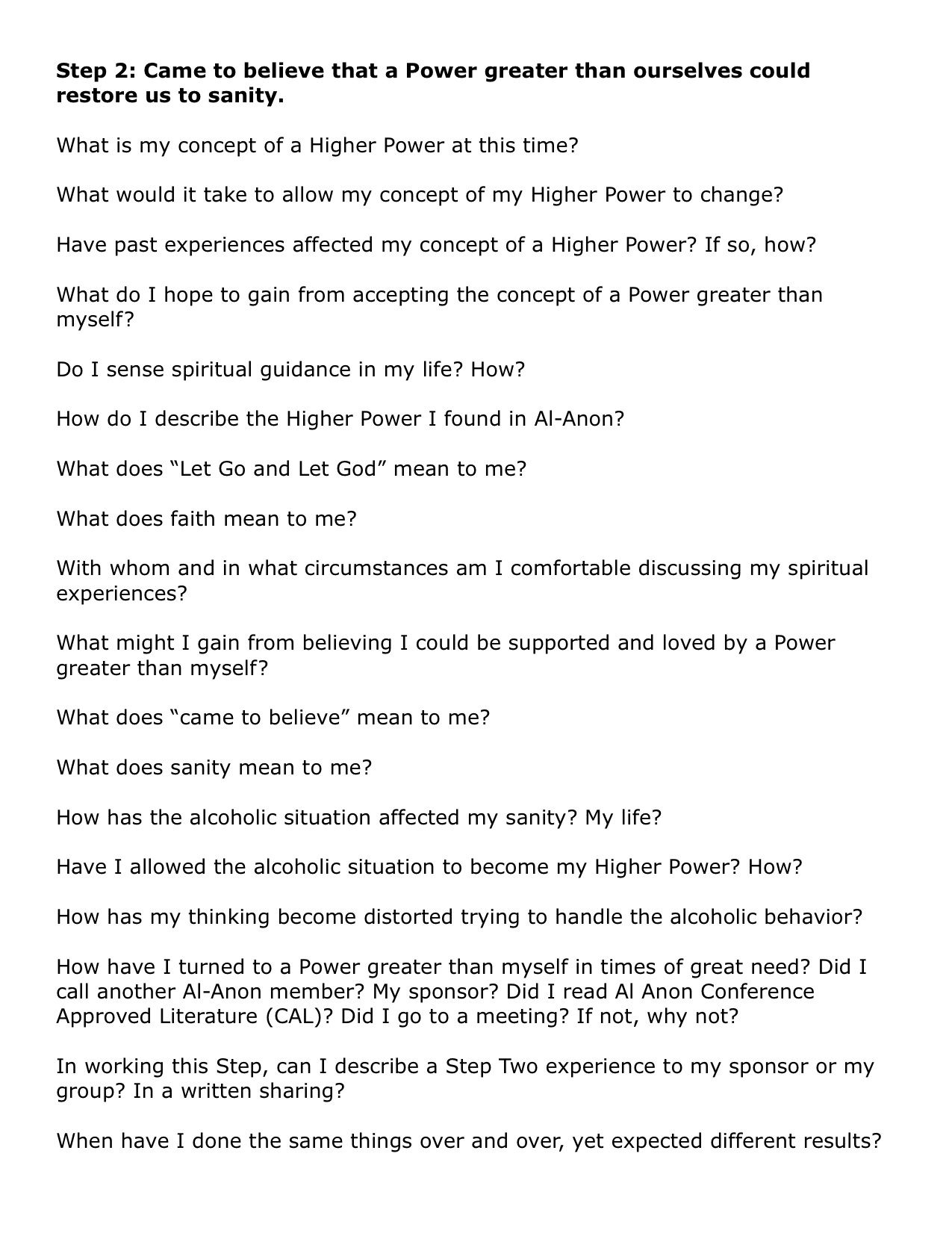 AA Step Worksheets Step 2