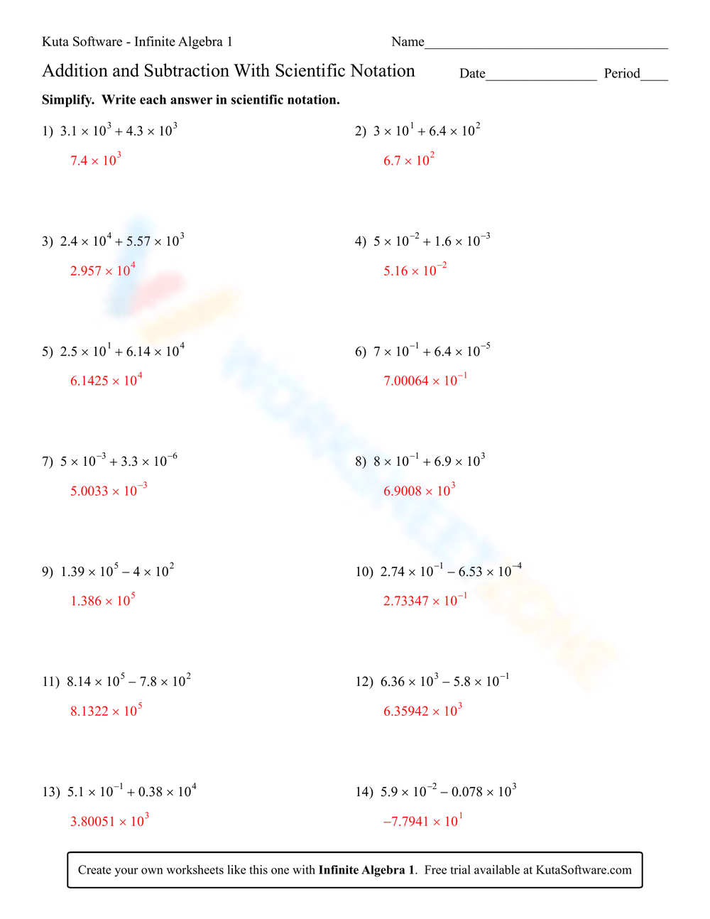 One way to practice and master adding and subtracting numbers in scientific notation is by using worksheets. These worksheets typically contain a series of problems that require students to add or subtract numbers in scientific notation. By solving these problems, students can improve their understanding of the rules and techniques involved in these operations.