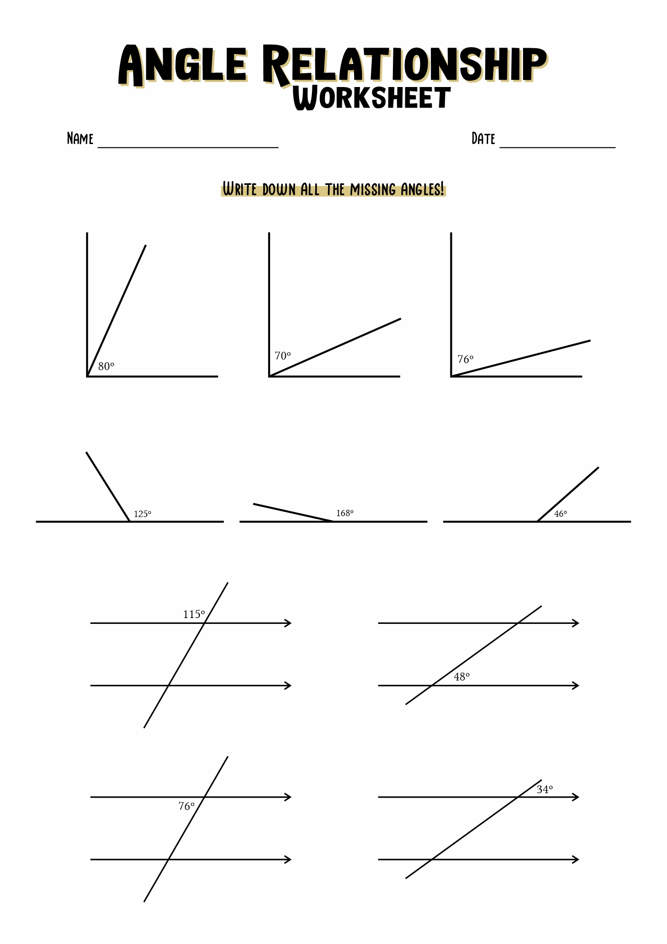 Angle relationships are an important concept in geometry that help us understand how different angles interact with each other. To practice and reinforce these concepts, angle relationships worksheets are a valuable resource for students. These worksheets typically contain a variety of problems that require students to identify and apply different angle relationships.