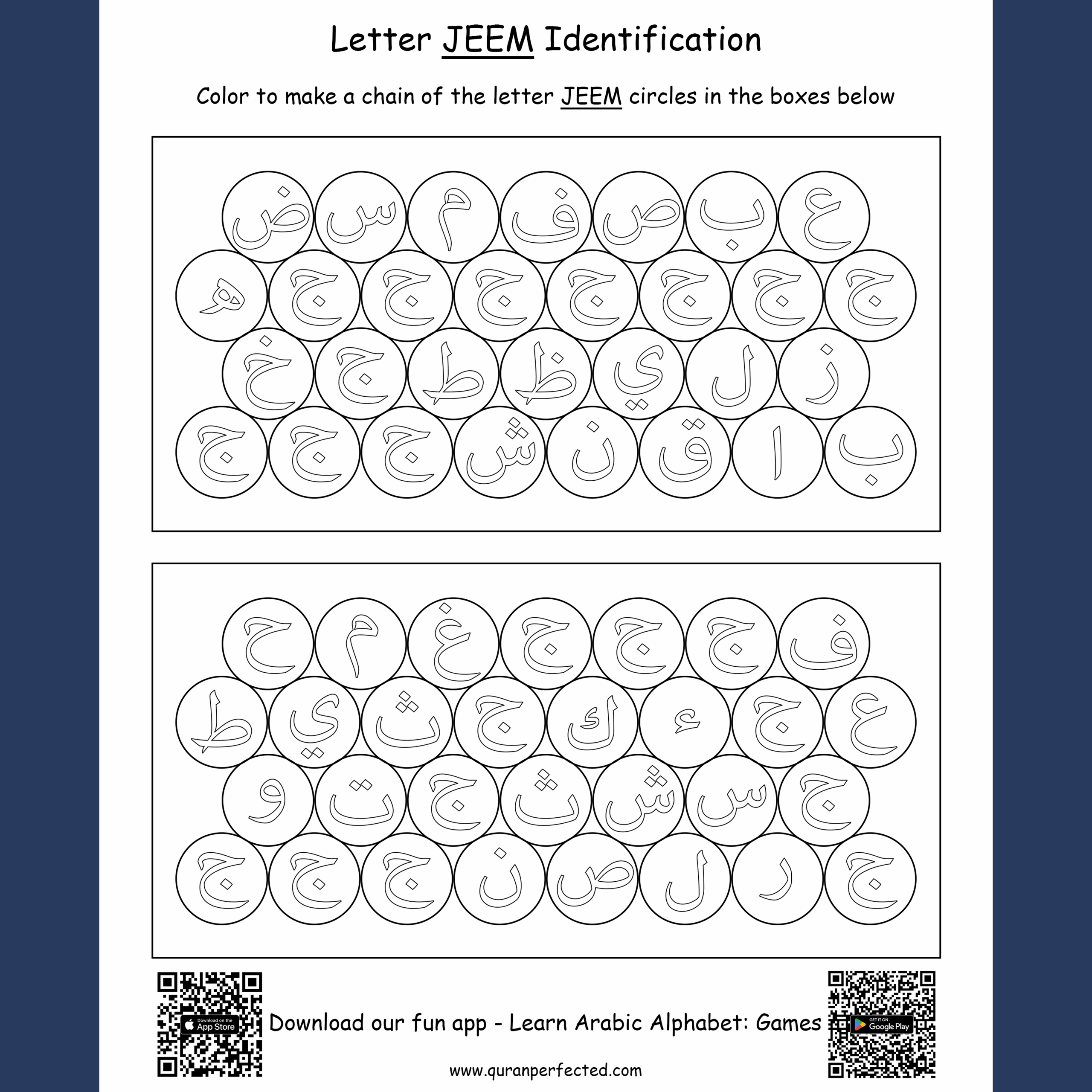 Each worksheet focuses on a specific letter or group of letters, allowing you to concentrate on areas where you may need more practice. By repeatedly writing and identifying the letters, you can strengthen your visual recognition and muscle memory, making it easier to read and write in Arabic.