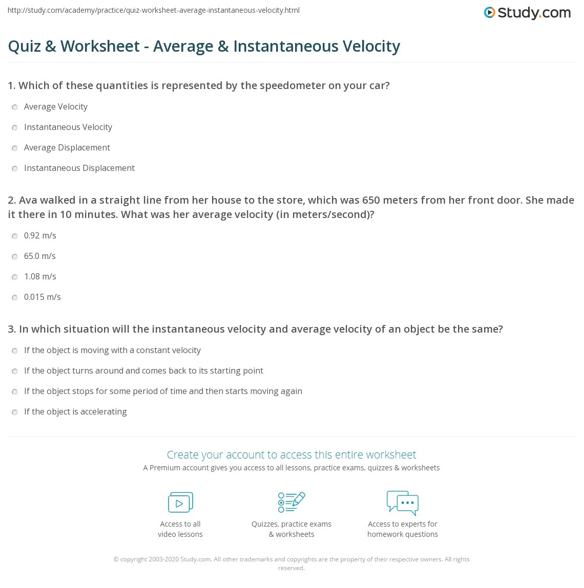One common type of problem found in average velocity worksheets is calculating the average velocity of an object moving in a straight line. Students are given information about the initial and final positions of the object, as well as the time it takes to travel between these positions. By using the formula for average velocity (change in position divided by change in time), students can determine the average velocity of the object.