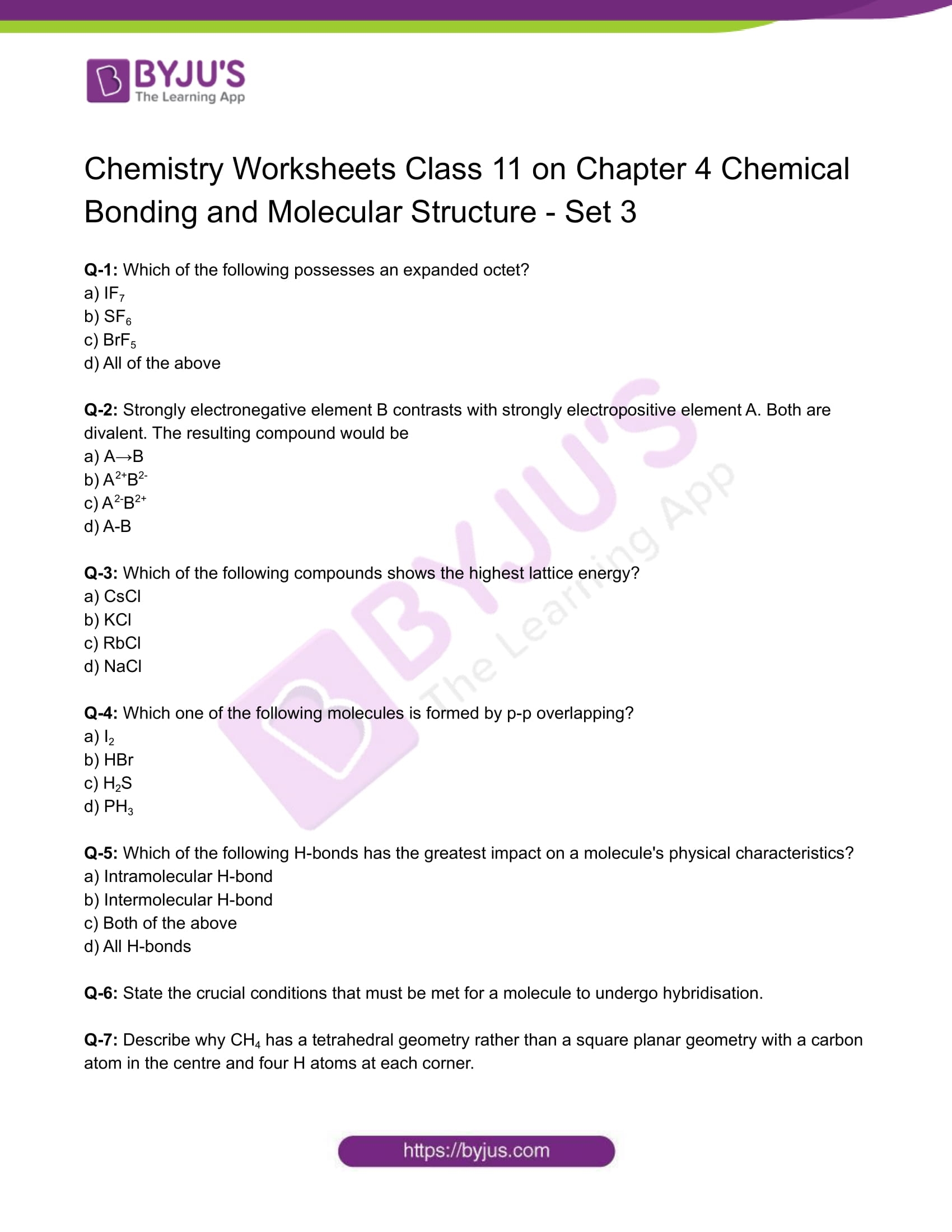 Chemical bonding is a fundamental concept in chemistry that helps us understand how atoms interact with each other to form molecules. It is crucial in explaining the properties and behavior of substances. To practice and reinforce the knowledge of chemical bonding, worksheets are commonly used as a learning tool.