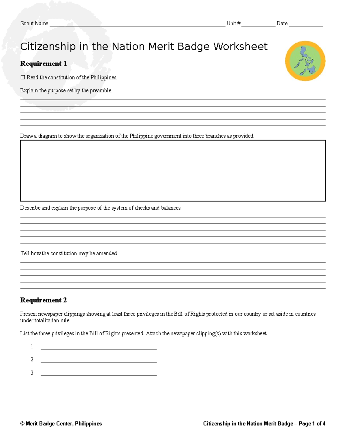 By completing the Citizenship in Nation merit badge worksheet, Scouts are able to explore the various aspects of their nation’s governance and society. This process helps them develop a deeper appreciation for their country and a greater sense of civic duty.
