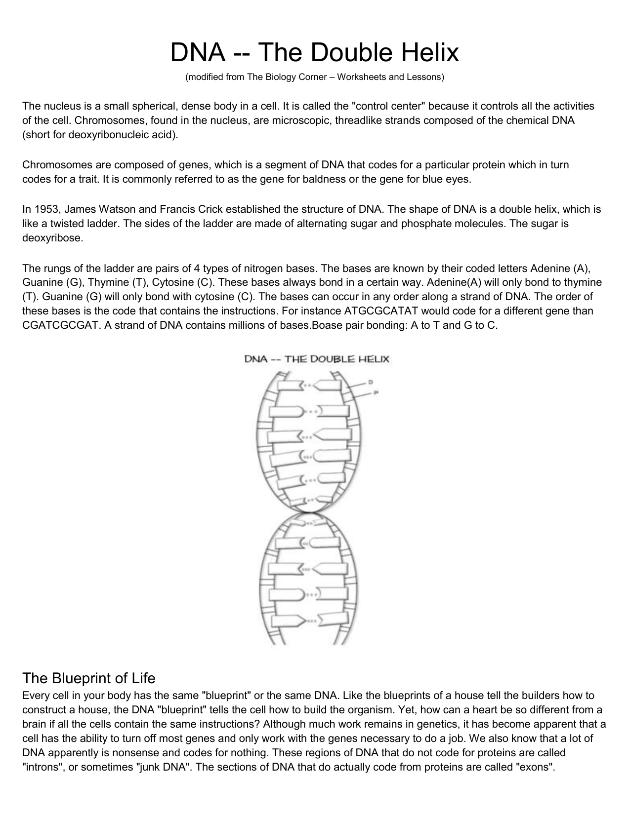 A DNA the double helix worksheet is a valuable educational tool that allows students to explore and understand the structure and function of DNA. These worksheets typically include questions and activities that help students visualize and comprehend the complex nature of DNA and its role in heredity and evolution.