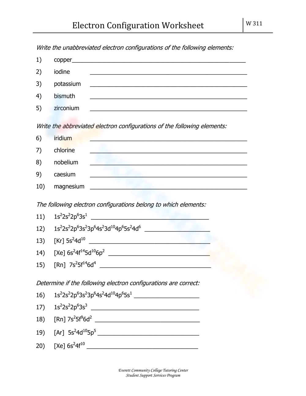 Free Printable Electron Configuration Practice Worksheets Worksheets Library