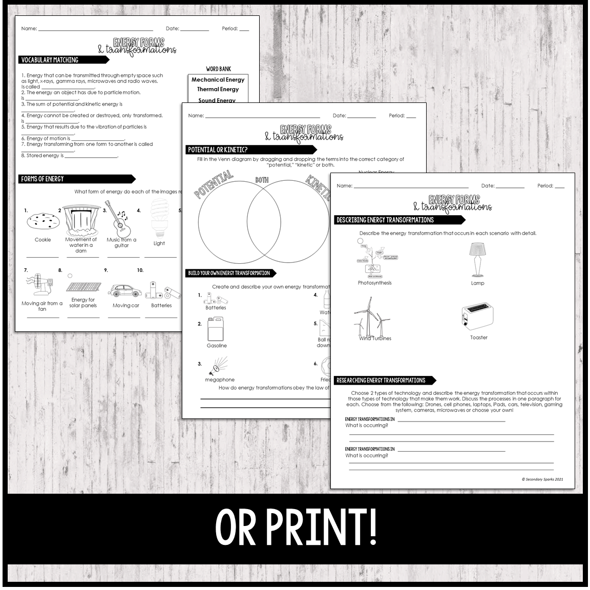 Energy and Energy Transformations Worksheet