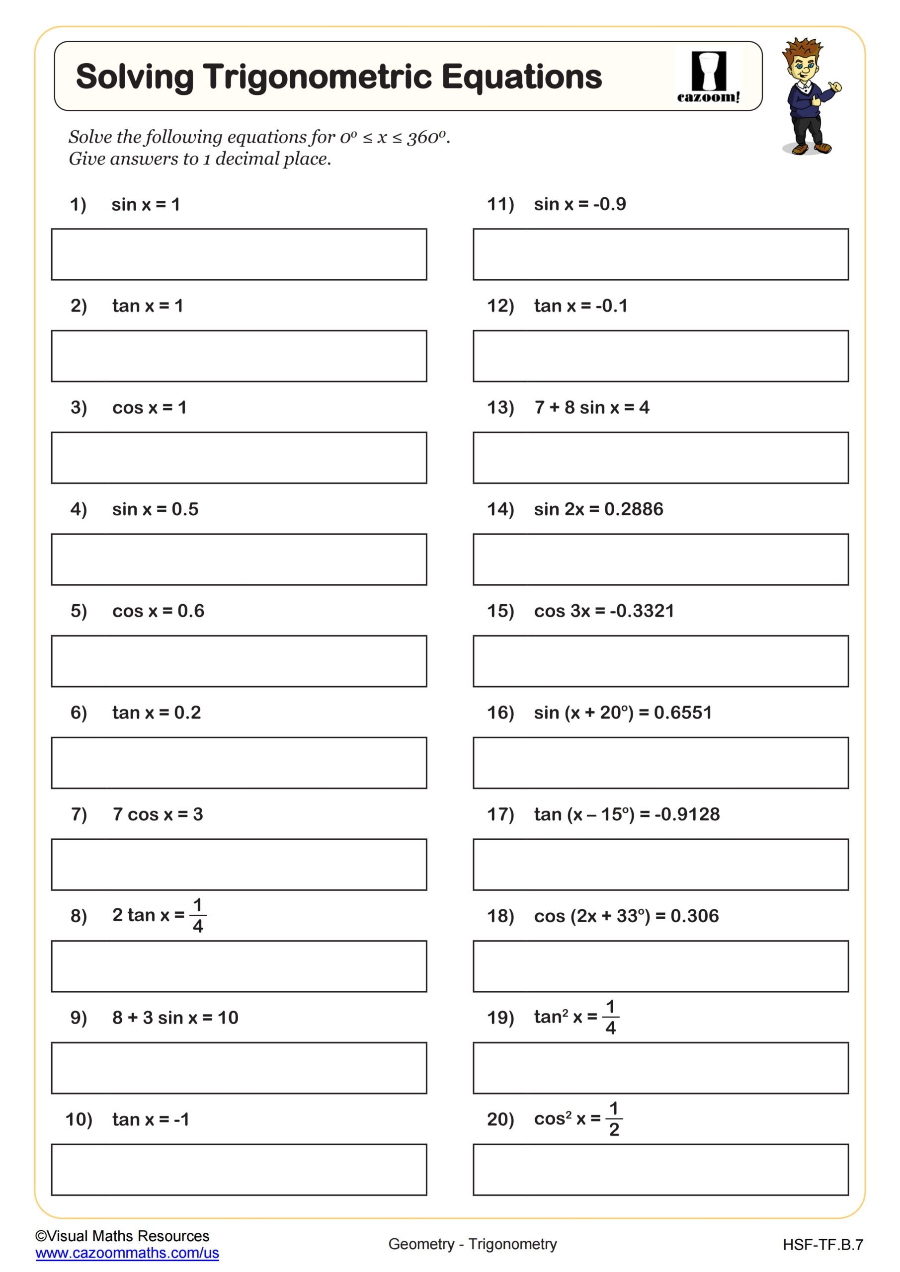 Solving Trigonometric Equations Worksheet Fun And Engaging