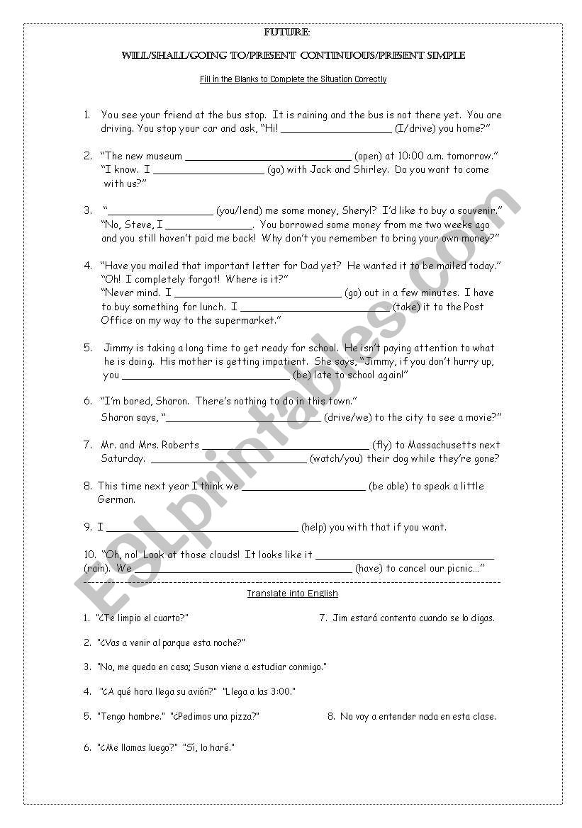 Additionally, fill in the blank future worksheets can help students develop their critical thinking skills. By analyzing the context of the sentence and choosing the appropriate future tense verb form, students are engaging in problem-solving and language processing activities that can enhance their overall language proficiency.