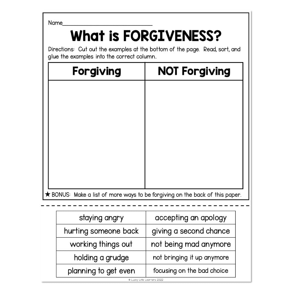 Social Emotional Learning Forgiveness Sort Lucky Little Learners Worksheets Library