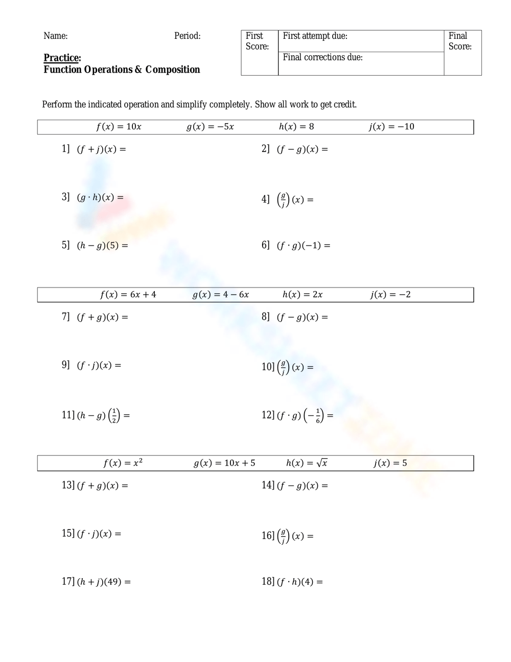 In conclusion, function operations worksheets are a valuable resource for students to practice and enhance their skills in manipulating functions. By working through these worksheets, students can improve their problem-solving abilities, understand the practical applications of mathematical concepts, and develop critical thinking skills. Teachers can use function operations worksheets as a tool to assess students’ understanding of the topic and provide targeted support where needed.