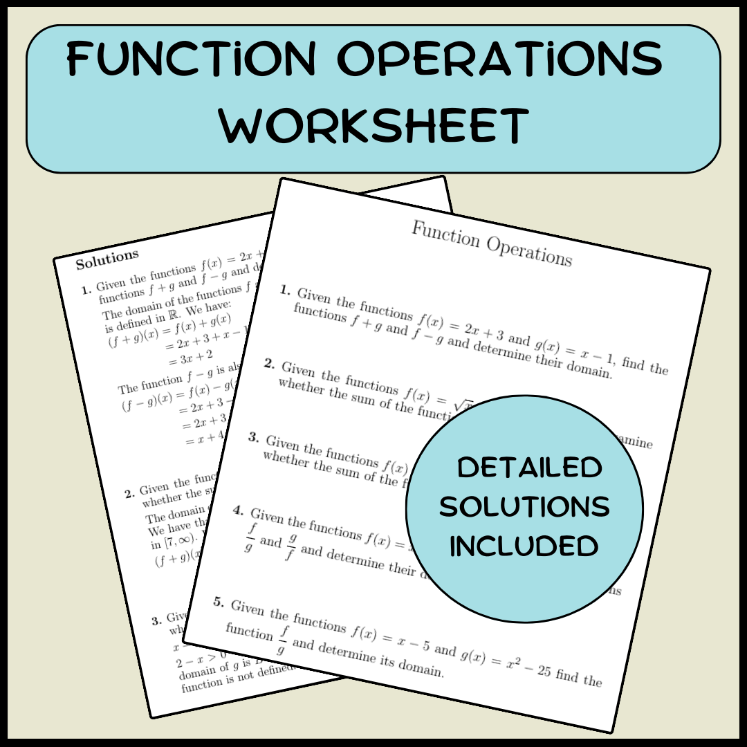 Furthermore, function operations worksheets can help students develop critical thinking and analytical skills. By solving problems that require them to combine and manipulate functions, students can improve their ability to analyze complex situations and come up with creative solutions.