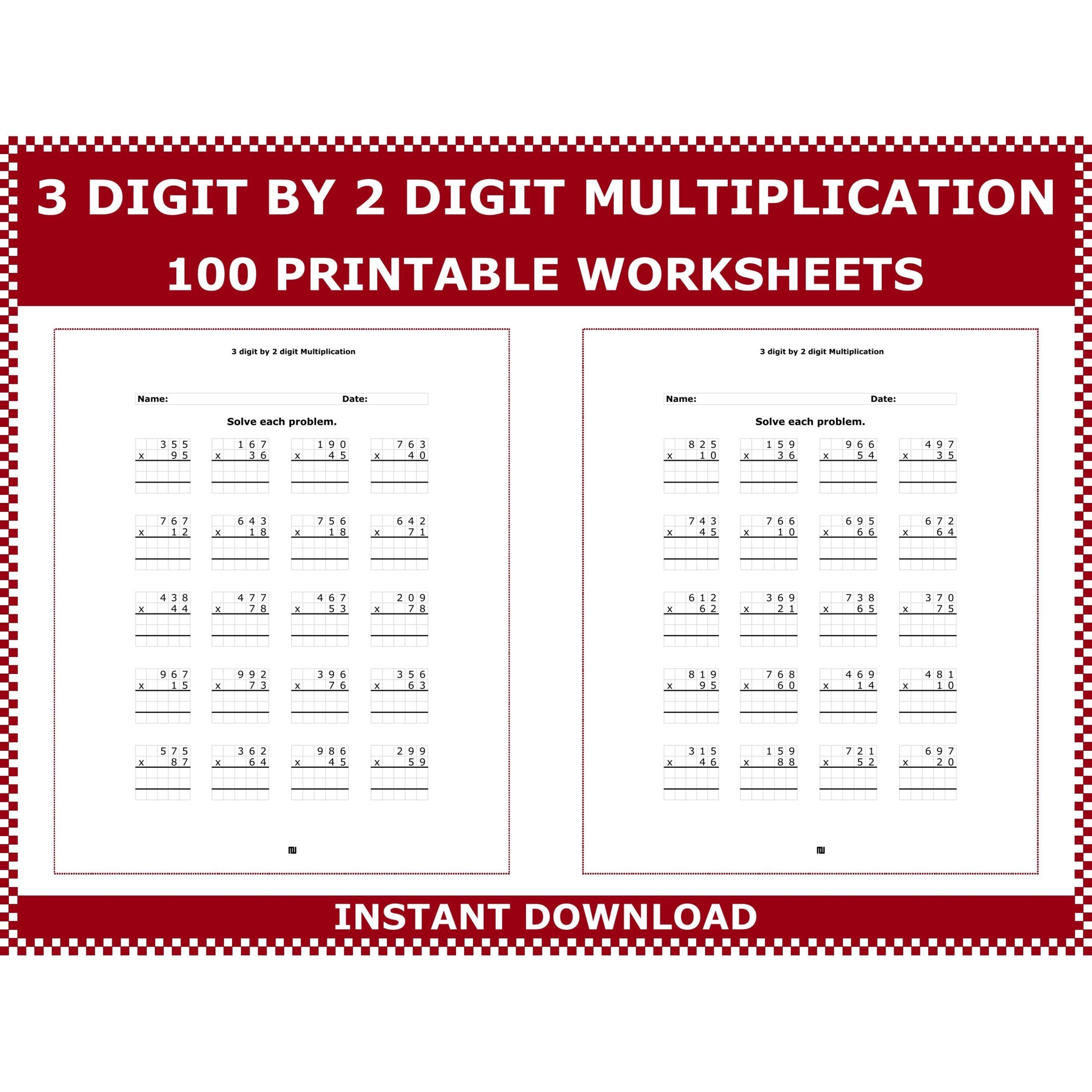 Multiplication Worksheets 3 Digit by 2 Digit