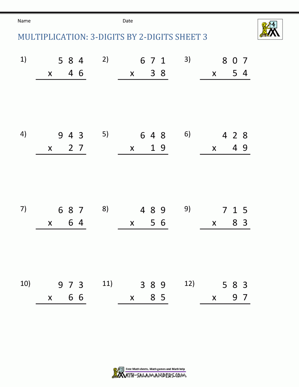 multiplying math worksheets