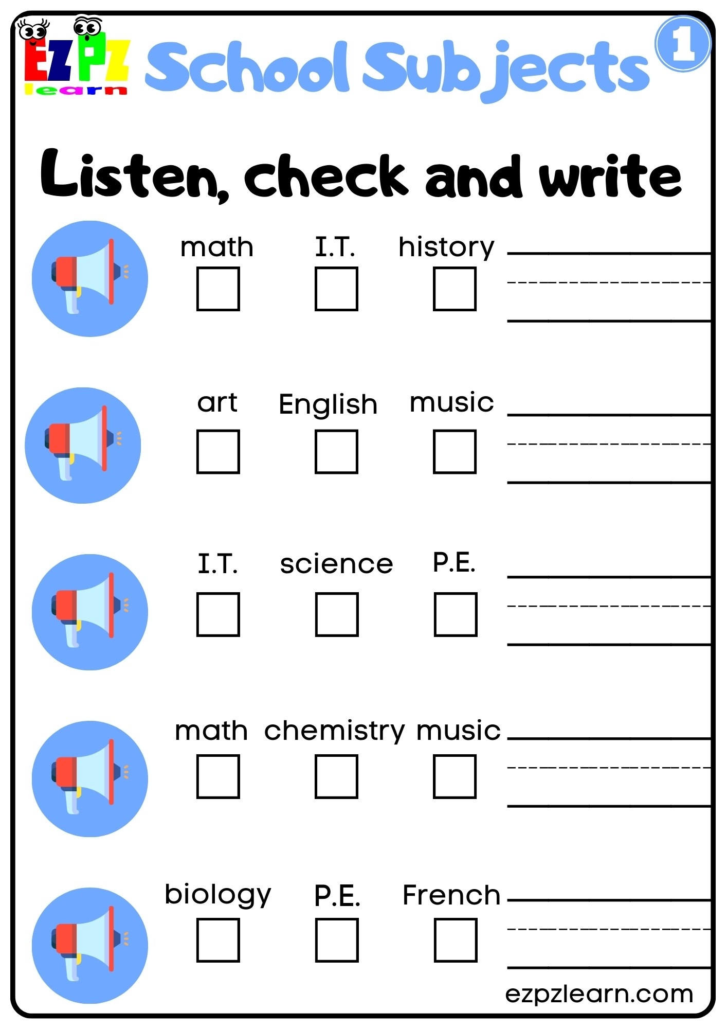 School Subjects Interactive Worksheet Listen Check And Write The