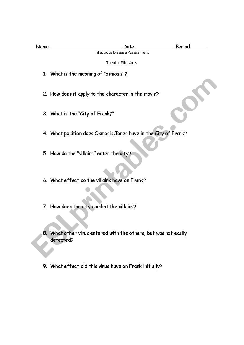 Osmosis Jones ESL Worksheet By Ms Kasper Worksheets Library