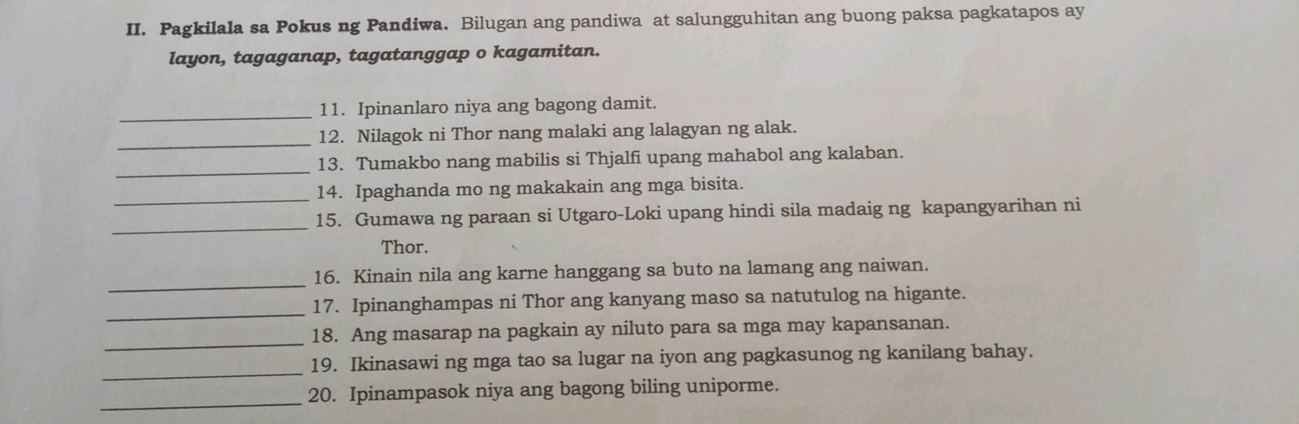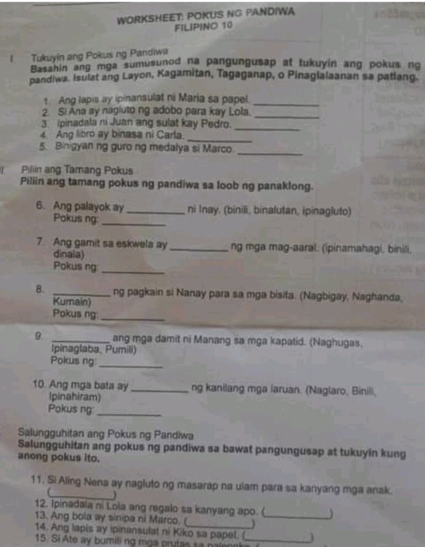WORKSHEET POKUS NG PANDWA FILIPINO 10 I StudyX