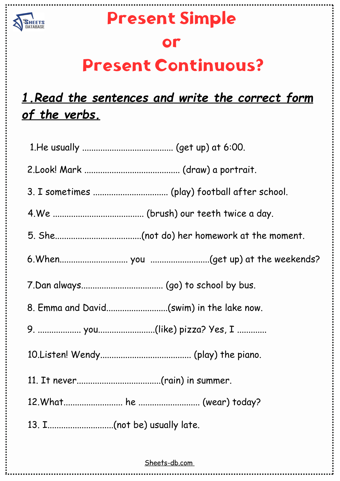 Examples of Present Continuous Worksheets