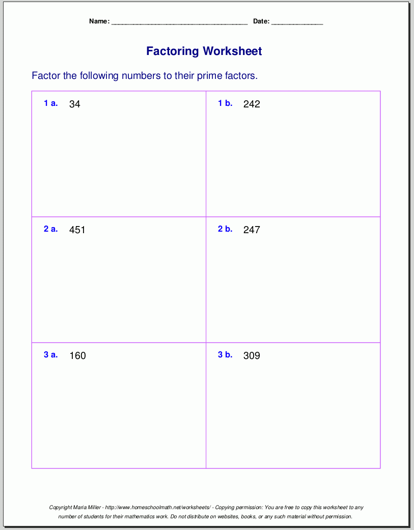 One convenient way to access prime factorization worksheets is through PDF format. PDF files are easily downloadable and printable, making them accessible for both teachers and students. These worksheets can be used in the classroom or at home for extra practice.