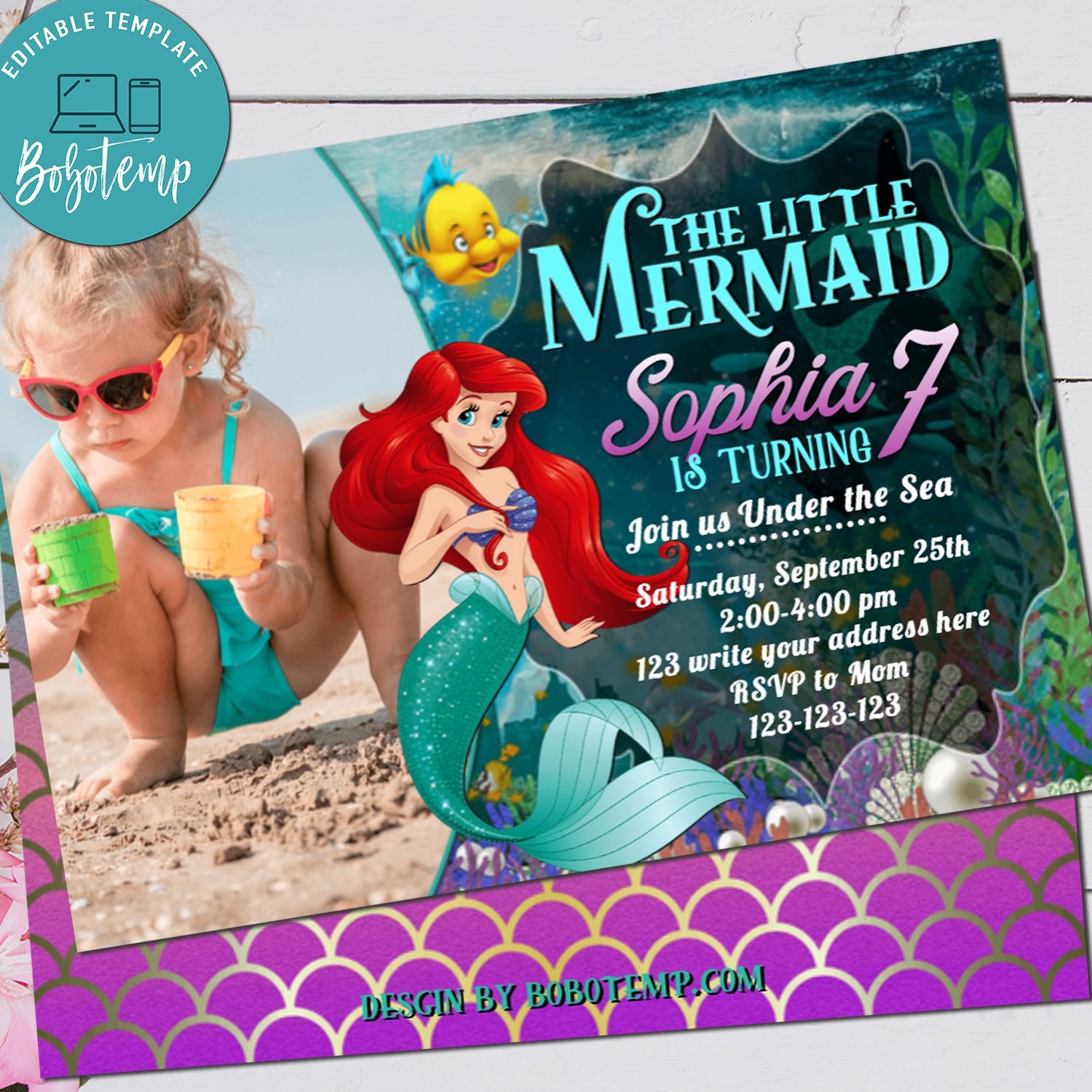 Little Mermaid Ariel Birthday Invitation Card With Picture DIY