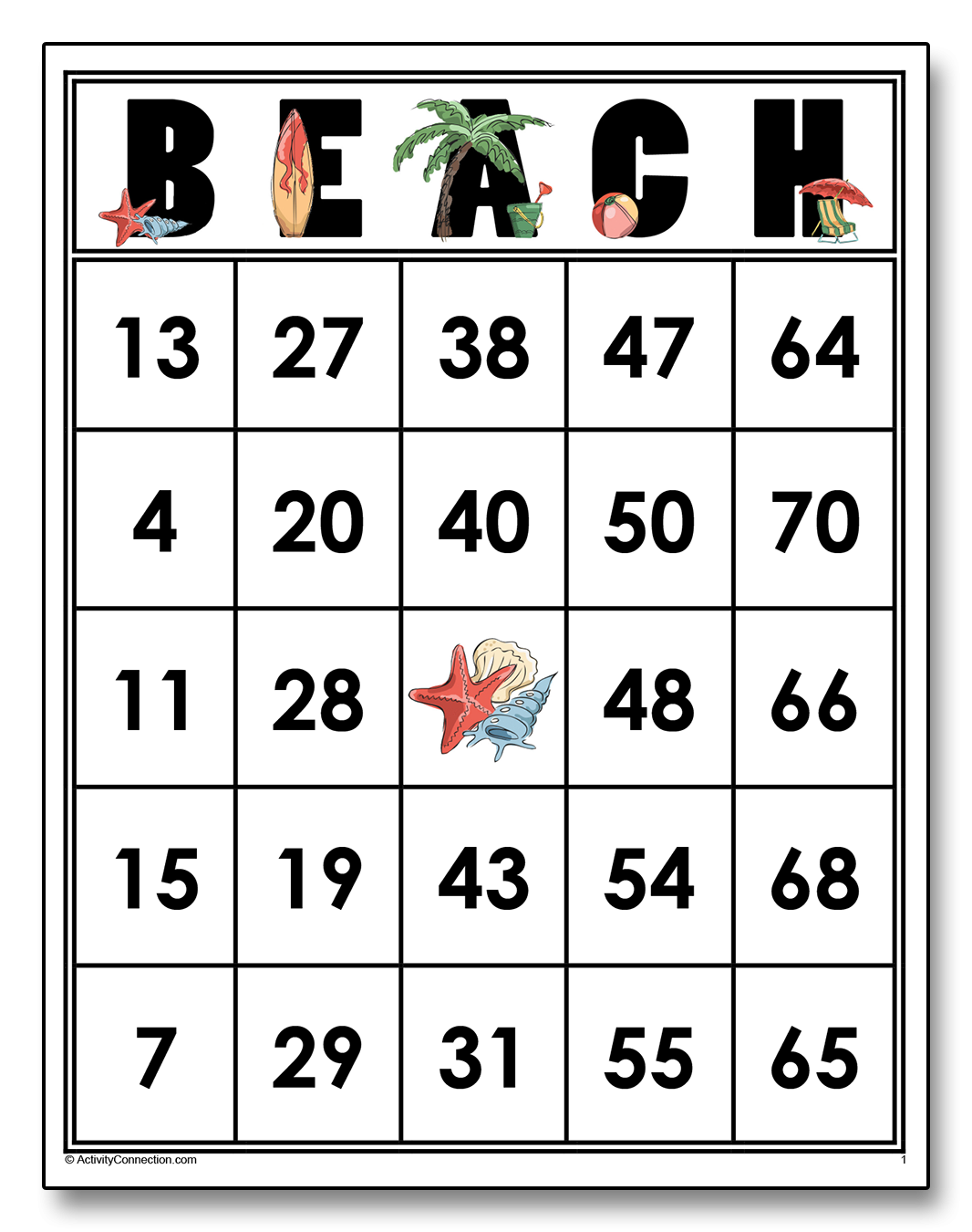 BEACH Bingo Cards Printable Activity Connection
