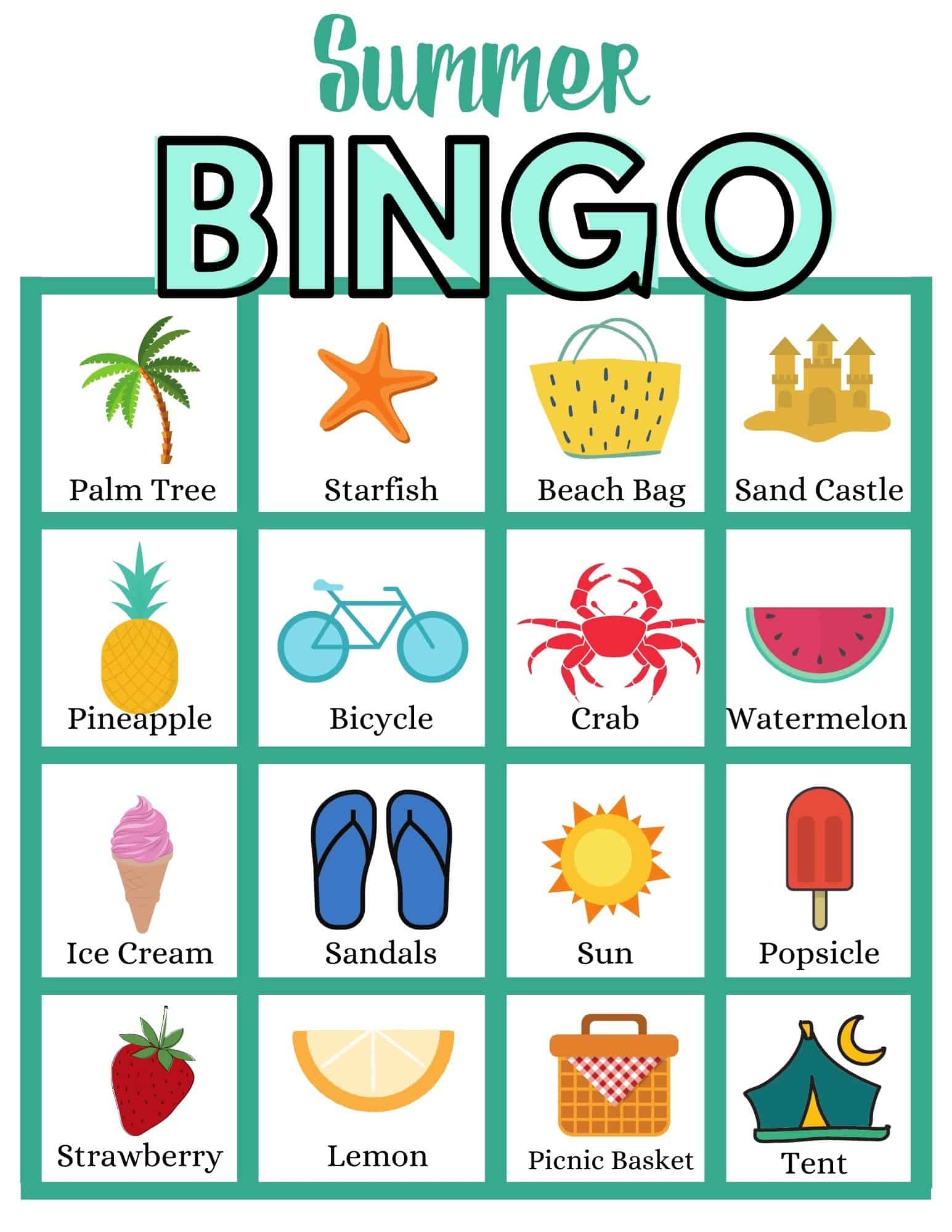 Beach Day Bingo Printable Fun Game For Kids Summer Vacation