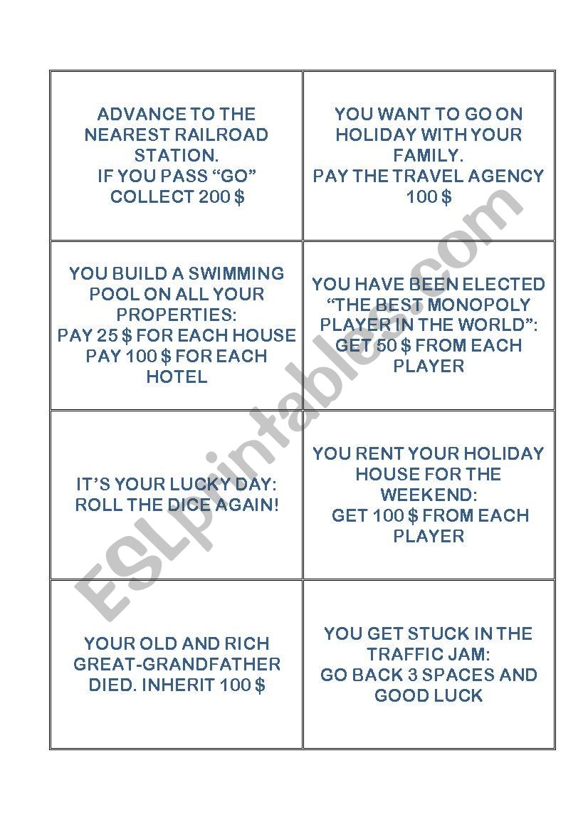 Printable Chance and Community Chest Cards