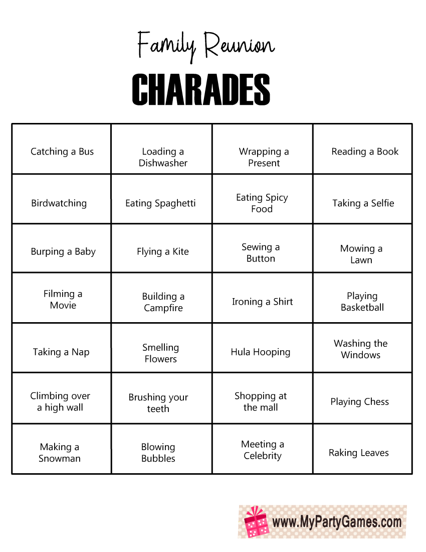 Printable charade cards for family are a convenient way to keep the game organized and ensure that everyone has a good time. You can easily print out as many cards as you need, making it simple to keep the game going for as long as you like. Plus, you can easily create new cards to keep the game from getting stale.