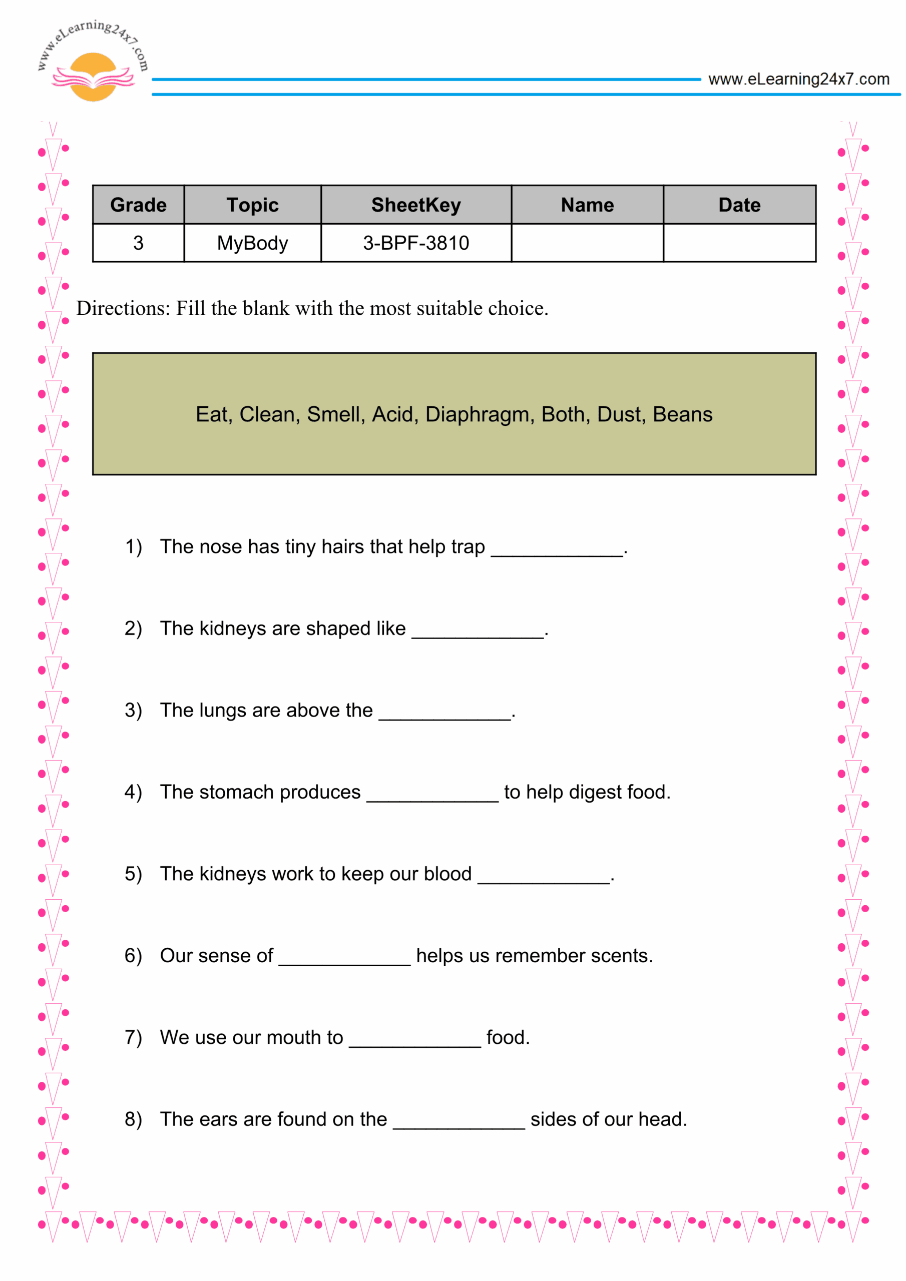 Body Parts Fill The Blanks Https eLearning24x7