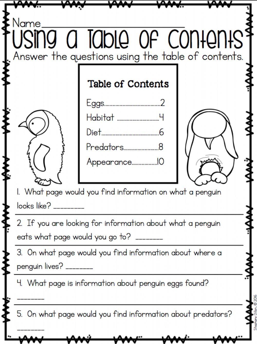 Printable Table Of Contents Worksheet Pdf