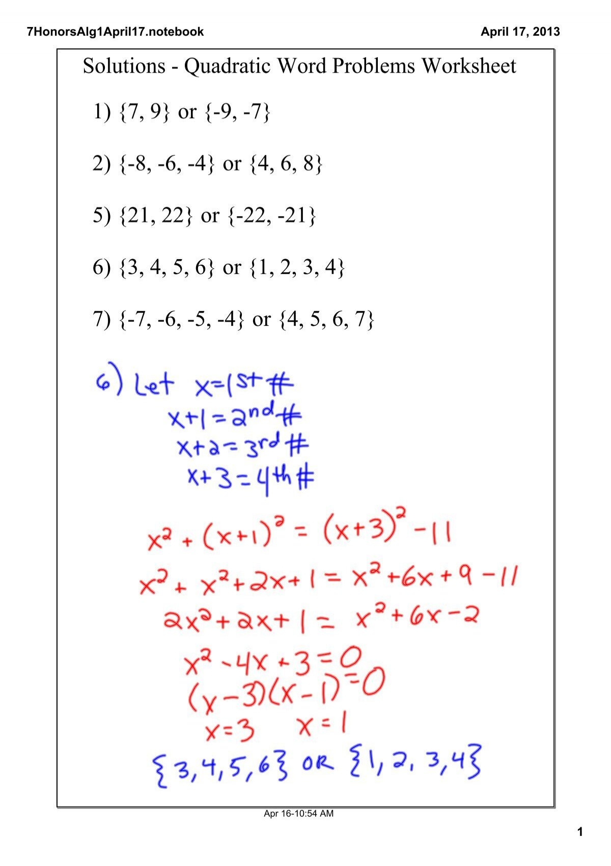 Solutions Quadratic Word Problems Worksheet 1 7 9 Or 9 7 2