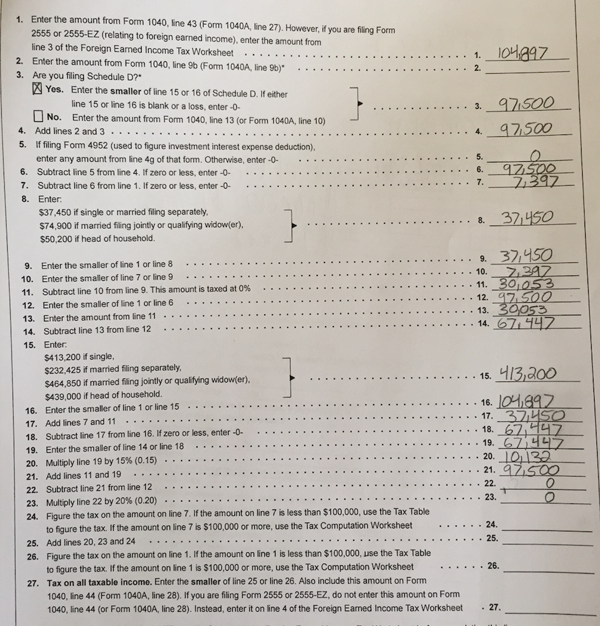 Qualified Dividends and Capital Gain Tax Worksheet Line 16