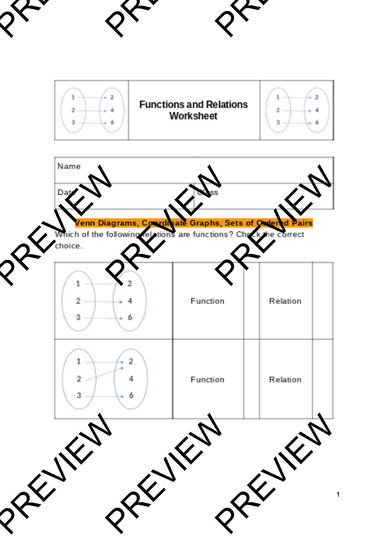 One common type of question on a relations and functions worksheet is to determine whether a given relation is a function. Students must analyze the input-output pairs of the relation to see if each input is paired with exactly one output. This helps students understand the concept of a function as a rule that assigns each input to exactly one output.
