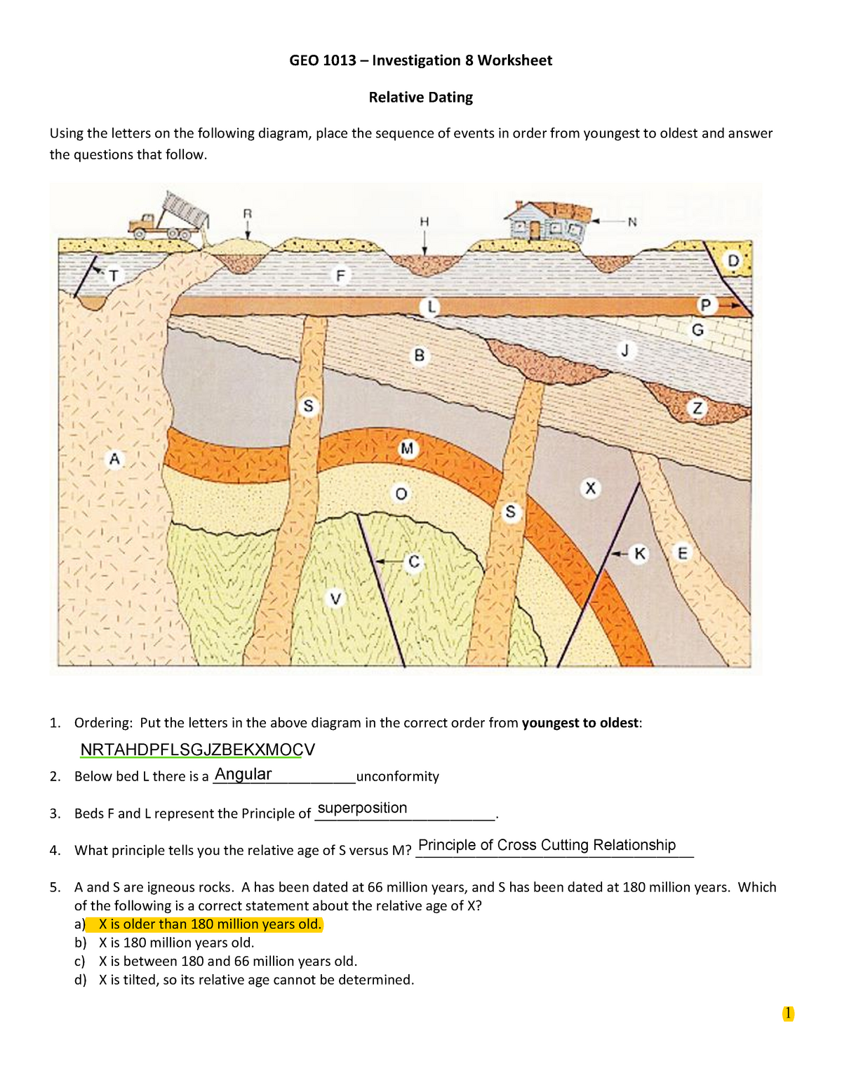 Relative Age Worksheet Geology Dating