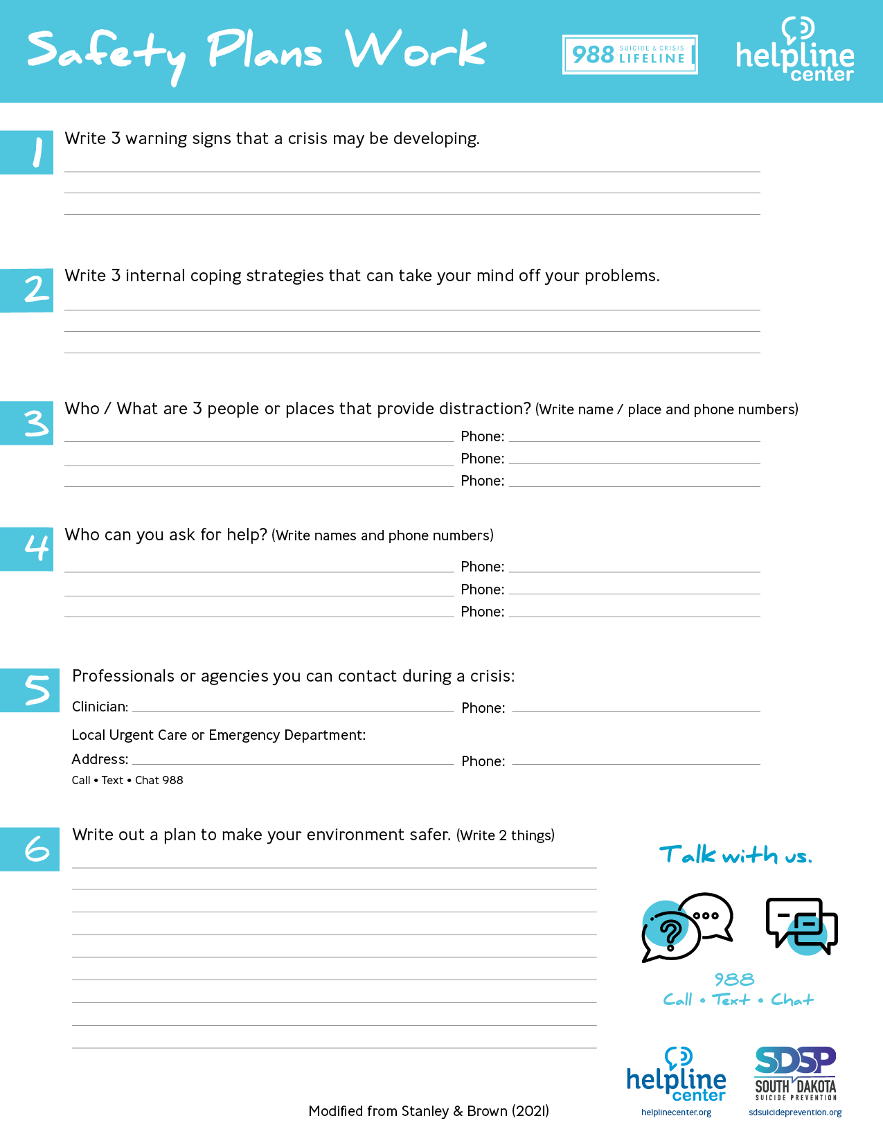 Download and Print safety plan worksheet Listed below