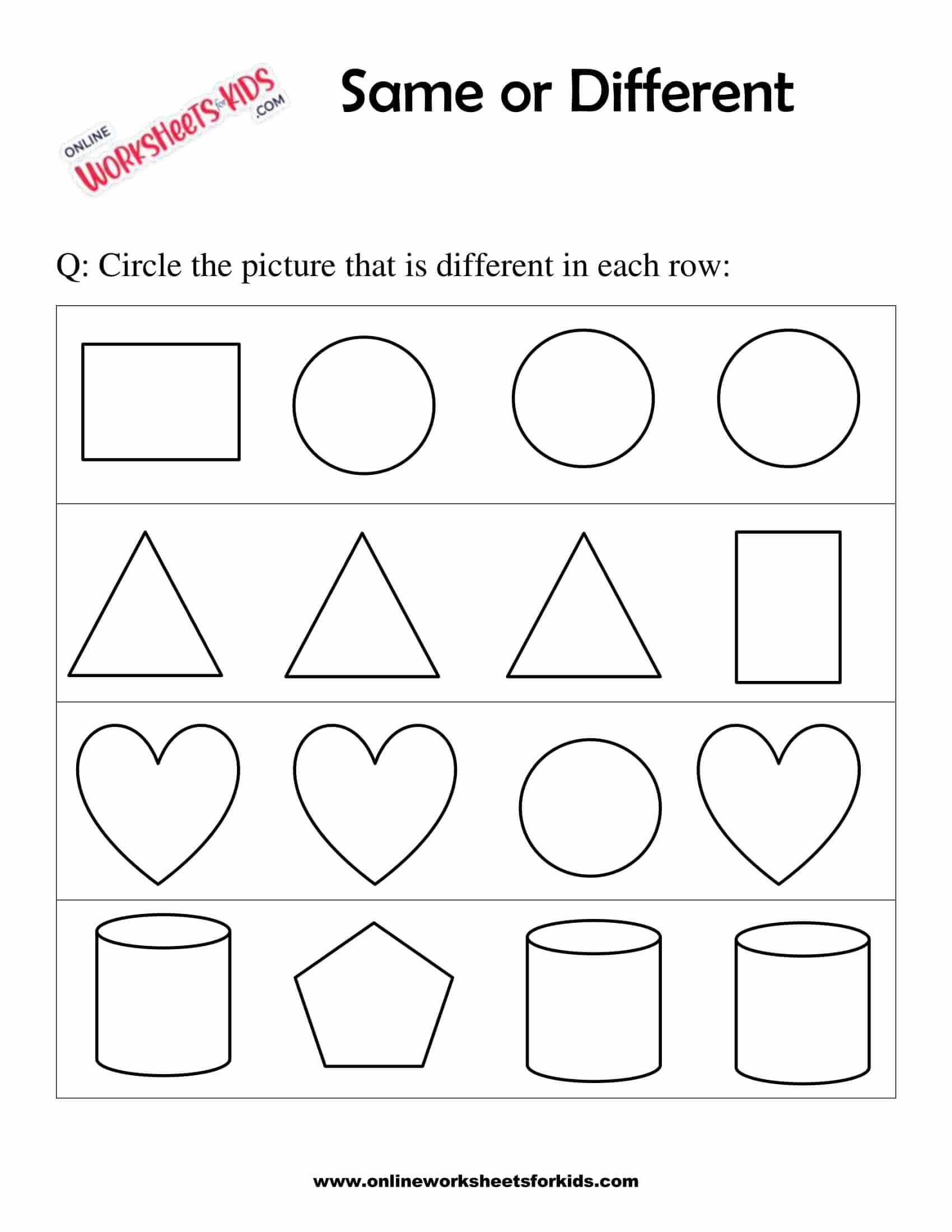 Same or Different Worksheet