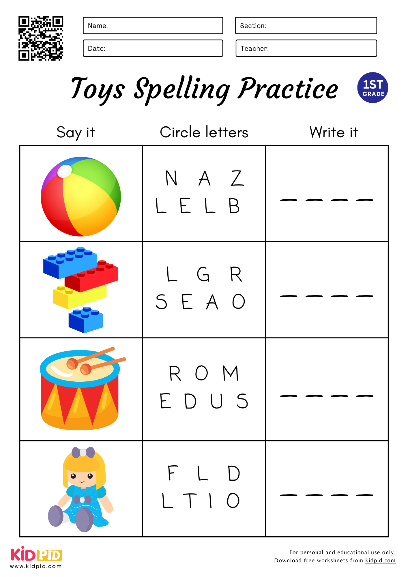 Spelling is an essential skill that children begin to develop in 1st grade. It is crucial for young learners to practice spelling regularly to improve their vocabulary and language skills. One effective way to help 1st graders enhance their spelling abilities is by using worksheets specifically designed for their age group.