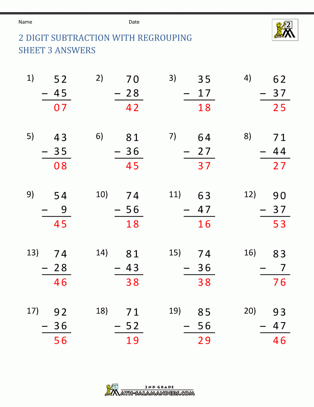 Subtracting with regrouping worksheets typically include a series of subtraction problems that require students to regroup when necessary. These problems can range from simple two-digit subtraction to more complex three-digit subtraction. By practicing these problems on worksheets, students can become more comfortable with regrouping and develop strategies for solving subtraction problems efficiently.